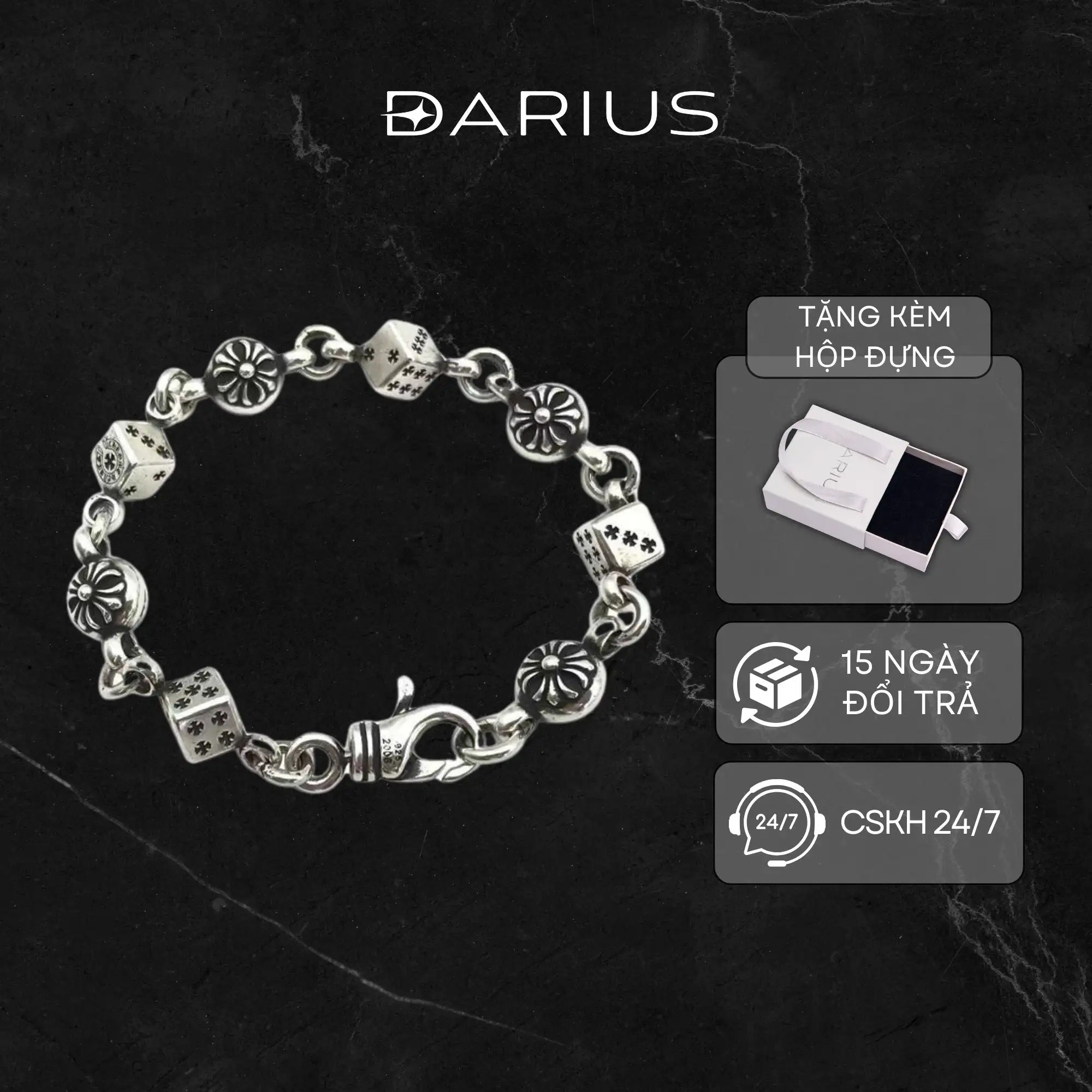 - Sản phẩm Vòng tay Darius được đóng gói full box bao gồm hộp và túi vải;